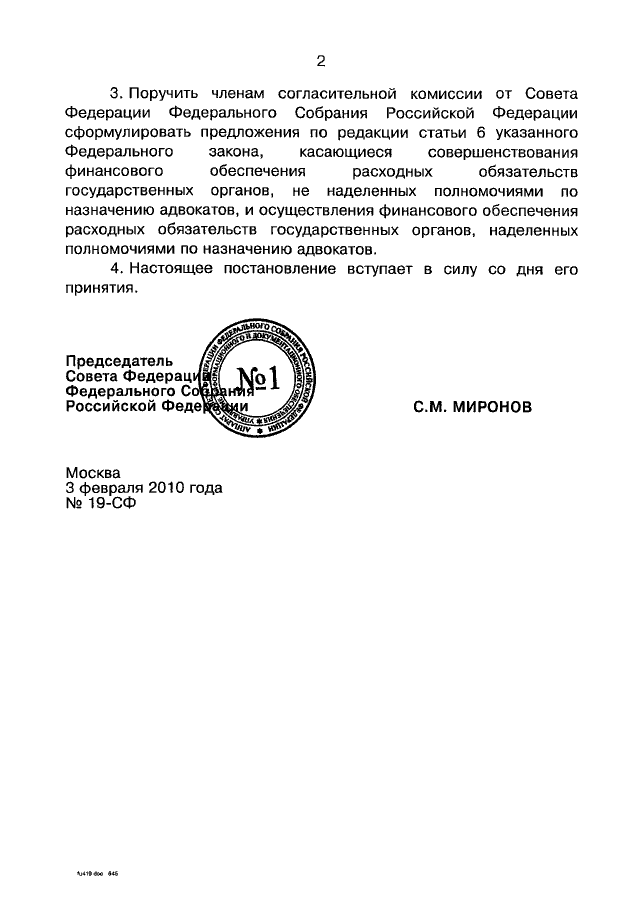 ПОСТАНОВЛЕНИЕ СФ ФС РФ от 03.02.2010 N 19-СФ