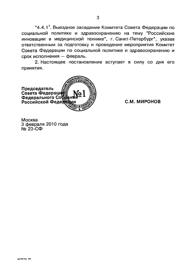 ПОСТАНОВЛЕНИЕ СФ ФС РФ от 03.02.2010 N 23-СФ