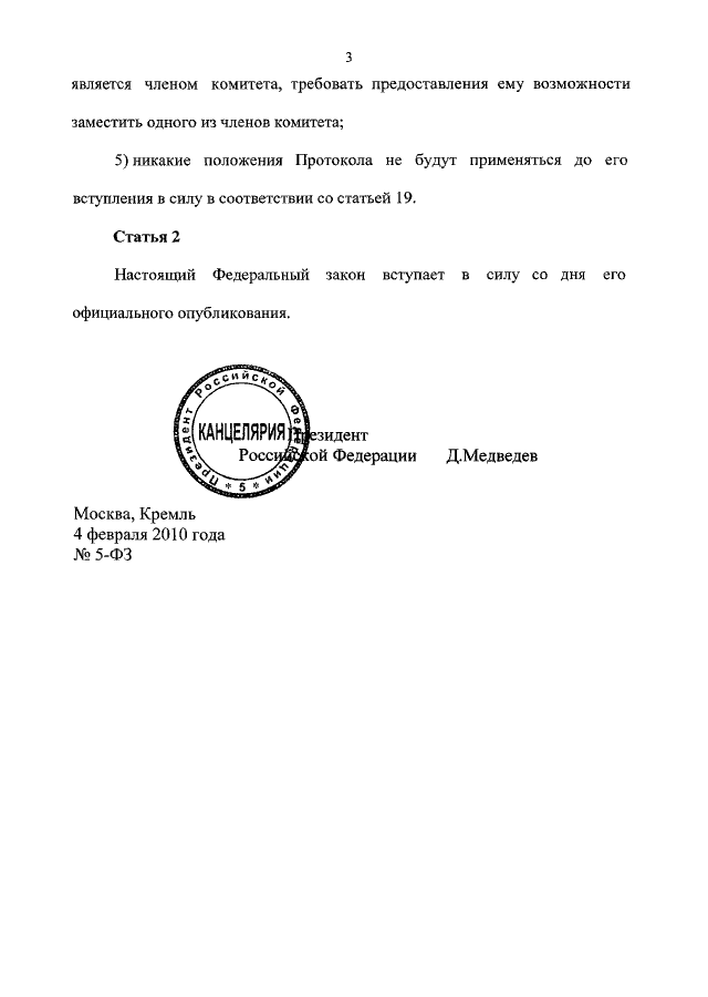 ФЕДЕРАЛЬНЫЙ ЗАКОН от 04.02.2010 N 5-ФЗ