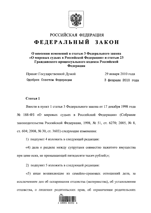 ФЕДЕРАЛЬНЫЙ ЗАКОН от 11.02.2010 N 6-ФЗ