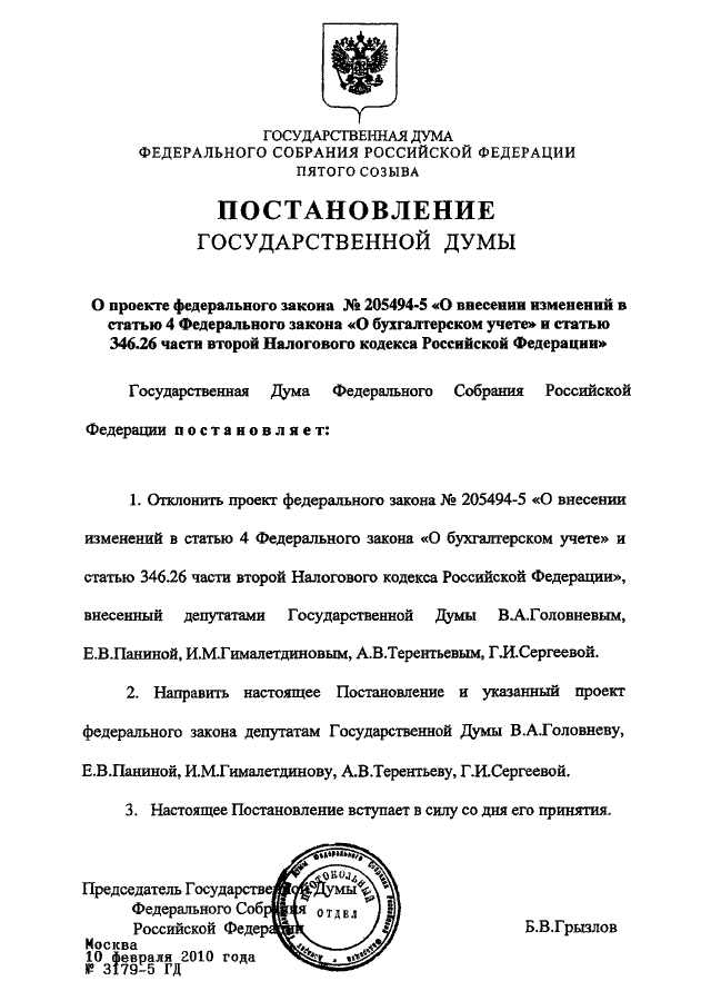 ПОСТАНОВЛЕНИЕ ГД ФС РФ от 10.02.2010 N 3179-5 ГД