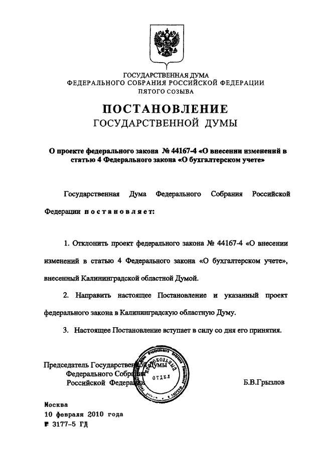 ПОСТАНОВЛЕНИЕ ГД ФС РФ от 10.02.2010 N 3177-5 ГД