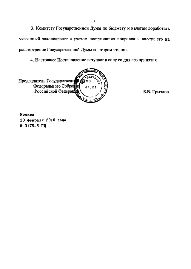 ПОСТАНОВЛЕНИЕ ГД ФС РФ от 10.02.2010 N 3175-5 ГД