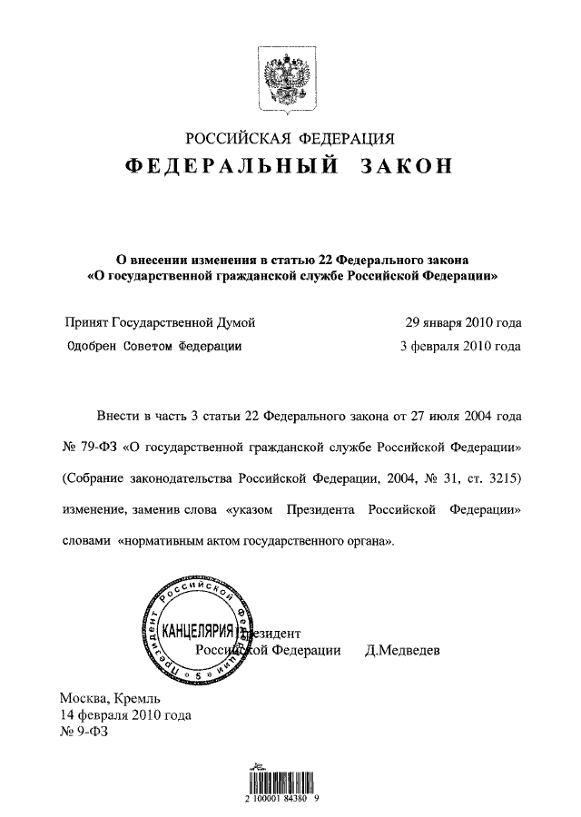 ФЕДЕРАЛЬНЫЙ ЗАКОН от 14.02.2010 N 9-ФЗ
