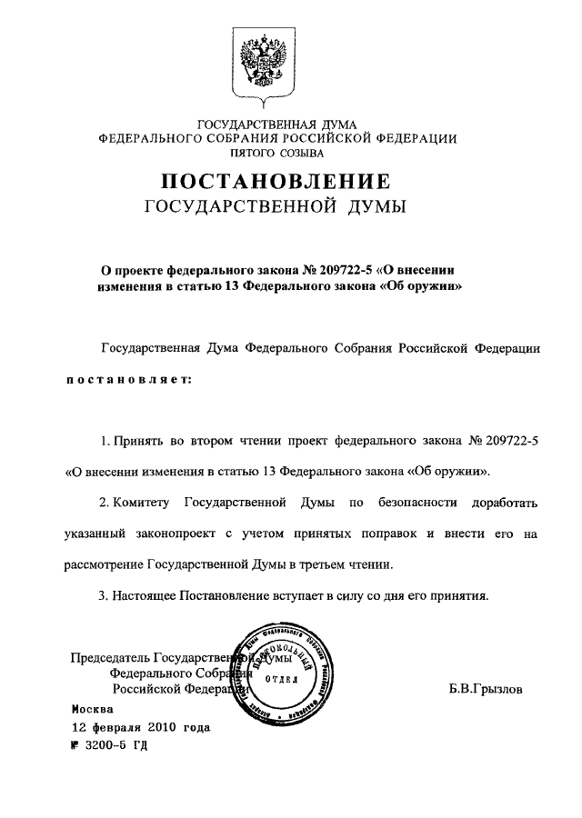 ПОСТАНОВЛЕНИЕ ГД ФС РФ от 12.02.2010 N 3200-5 ГД