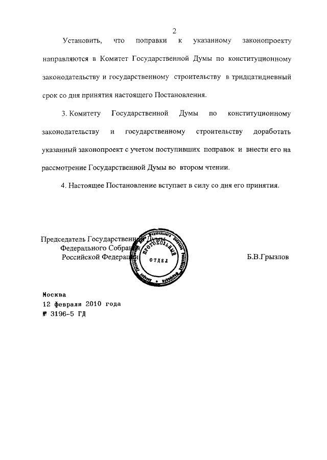 ПОСТАНОВЛЕНИЕ ГД ФС РФ от 12.02.2010 N 3196-5 ГД