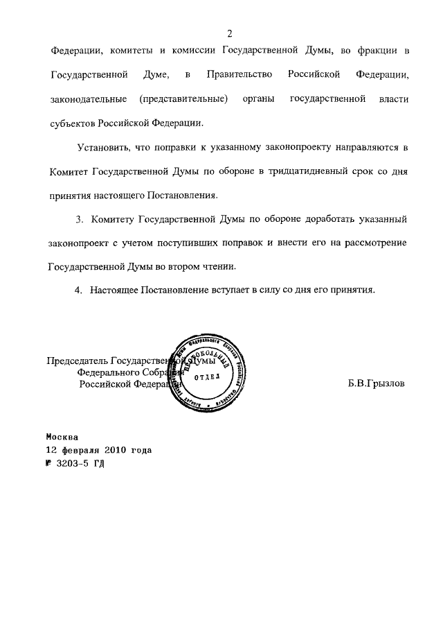 ПОСТАНОВЛЕНИЕ ГД ФС РФ от 12.02.2010 N 3203-5 ГД