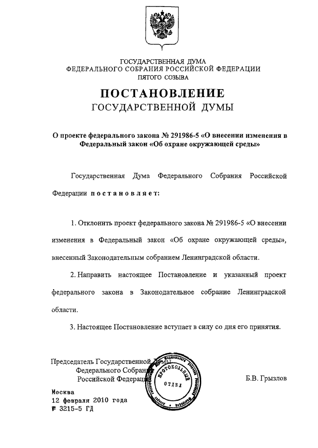 ПОСТАНОВЛЕНИЕ ГД ФС РФ от 12.02.2010 N 3215-5 ГД