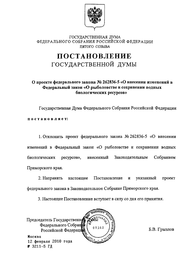 ПОСТАНОВЛЕНИЕ ГД ФС РФ от 12.02.2010 N 3211-5 ГД