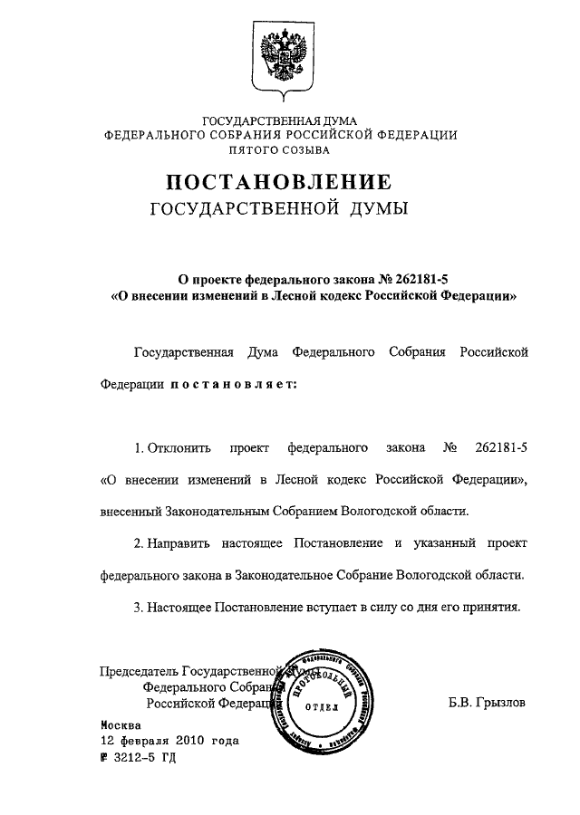 ПОСТАНОВЛЕНИЕ ГД ФС РФ от 12.02.2010 N 3212-5 ГД