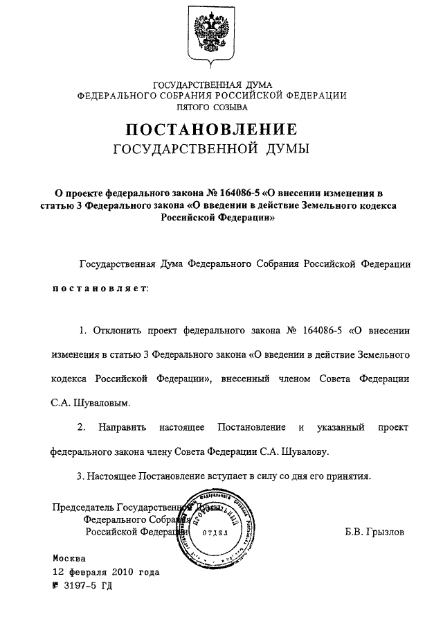ПОСТАНОВЛЕНИЕ ГД ФС РФ от 12.02.2010 N 3197-5 ГД