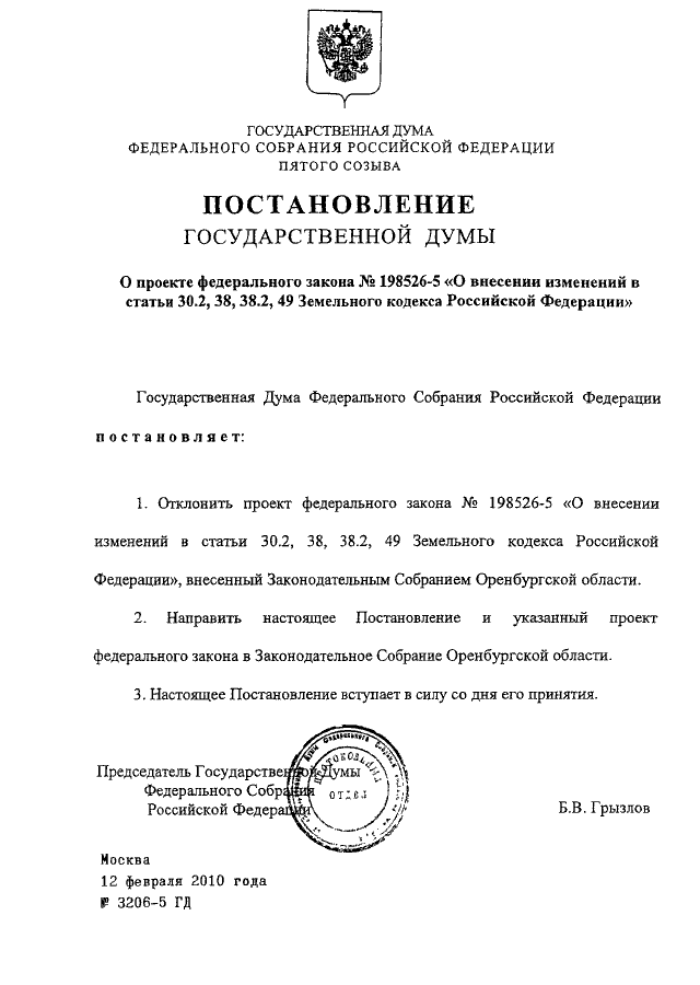 ПОСТАНОВЛЕНИЕ ГД ФС РФ от 12.02.2010 N 3206-5 ГД