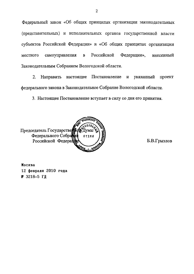 ПОСТАНОВЛЕНИЕ ГД ФС РФ от 12.02.2010 N 3218-5 ГД