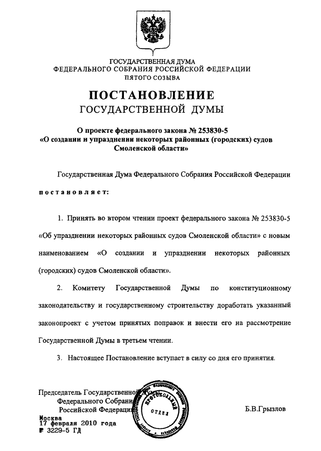 ПОСТАНОВЛЕНИЕ ГД ФС РФ от 17.02.2010 N 3229-5 ГД