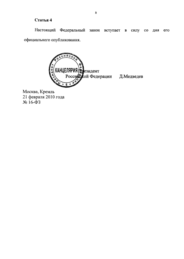 ФЕДЕРАЛЬНЫЙ ЗАКОН от 21.02.2010 N 16-ФЗ