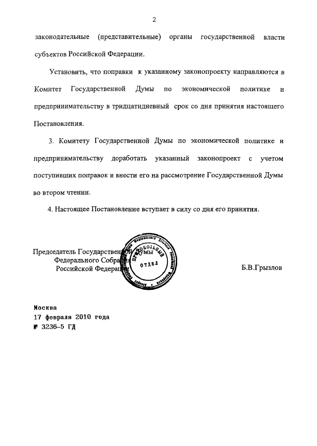 ПОСТАНОВЛЕНИЕ ГД ФС РФ от 17.02.2010 N 3236-5 ГД