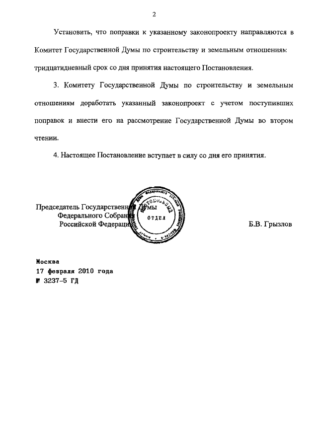 ПОСТАНОВЛЕНИЕ ГД ФС РФ от 17.02.2010 N 3237-5 ГД