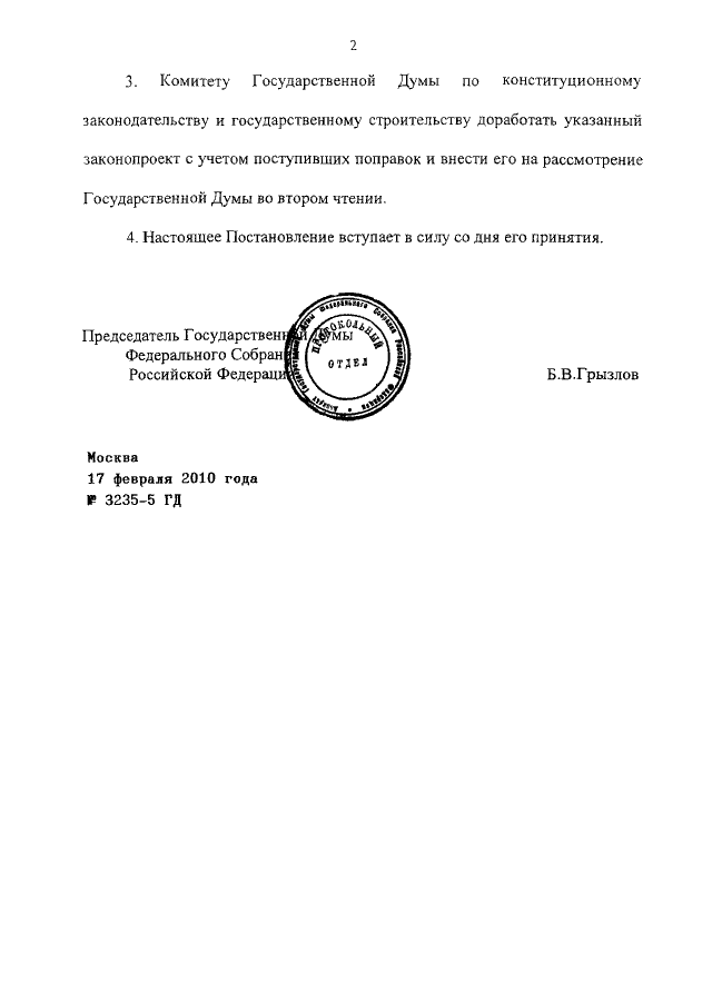 ПОСТАНОВЛЕНИЕ ГД ФС РФ от 17.02.2010 N 3235-5 ГД