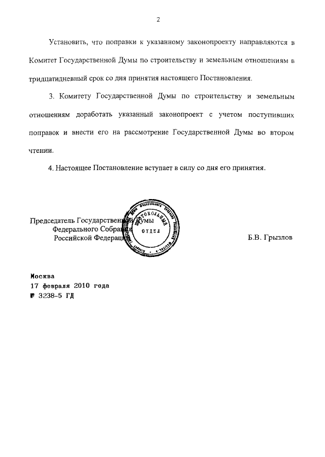 ПОСТАНОВЛЕНИЕ ГД ФС РФ от 17.02.2010 N 3238-5 ГД