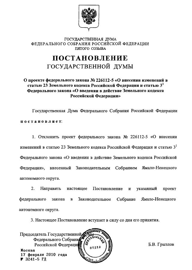 ПОСТАНОВЛЕНИЕ ГД ФС РФ от 17.02.2010 N 3241-5 ГД