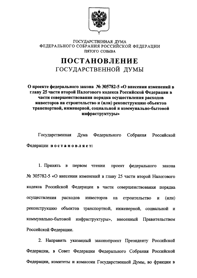 "О ПРОЕКТЕ ФЕДЕРАЛЬНОГО ЗАКОНА N 305782-5 "О ВНЕСЕНИИ ИЗМЕНЕНИЙ В