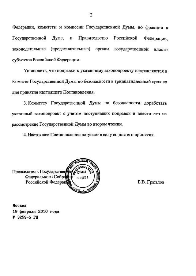 ПОСТАНОВЛЕНИЕ ГД ФС РФ от 19.02.2010 N 3259-5 ГД