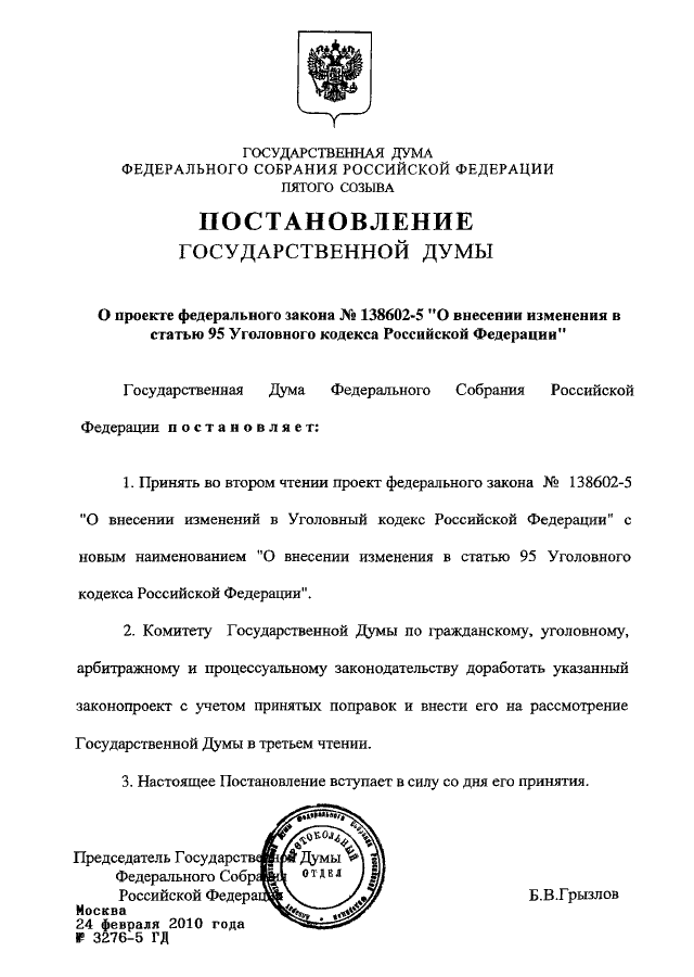 ПОСТАНОВЛЕНИЕ ГД ФС РФ от 24.02.2010 N 3276-5 ГД