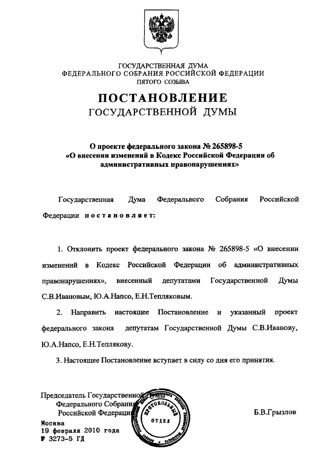 ПОСТАНОВЛЕНИЕ ГД ФС РФ от 19.02.2010 N 3273-5 ГД