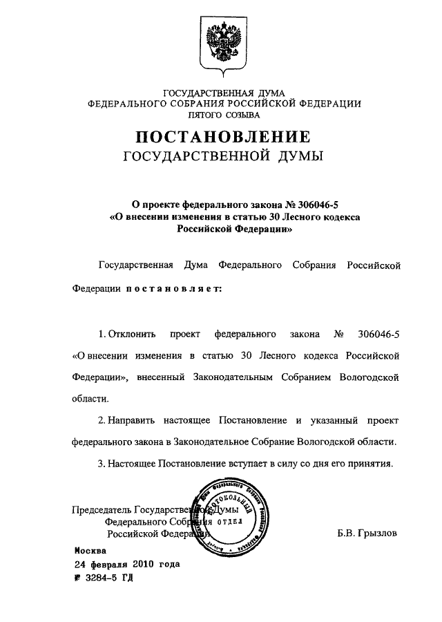 ПОСТАНОВЛЕНИЕ ГД ФС РФ от 24.02.2010 N 3284-5 ГД