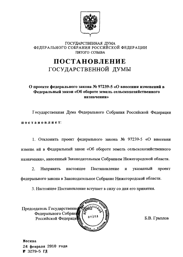 ПОСТАНОВЛЕНИЕ ГД ФС РФ от 24.02.2010 N 3279-5 ГД