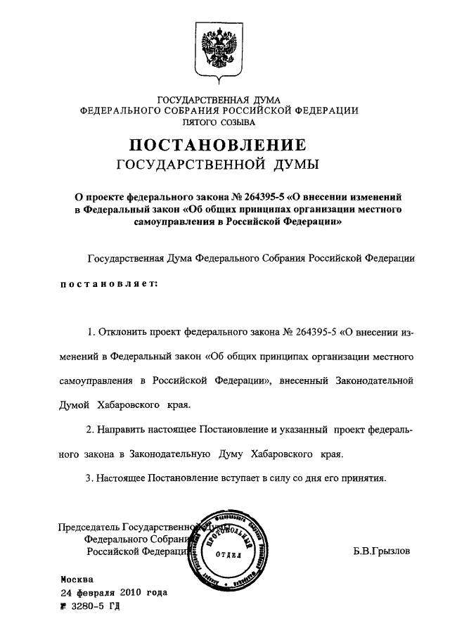ПОСТАНОВЛЕНИЕ ГД ФС РФ от 24.02.2010 N 3280-5 ГД