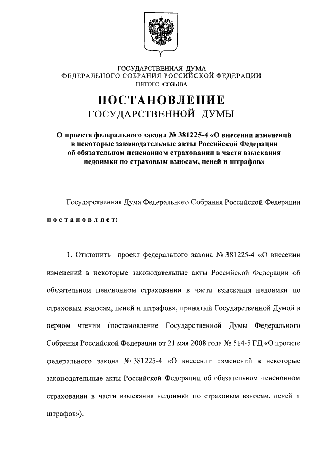 "О ПРОЕКТЕ ФЕДЕРАЛЬНОГО ЗАКОНА N 381225-4 "О ВНЕСЕНИИ ИЗМЕНЕНИЙ В