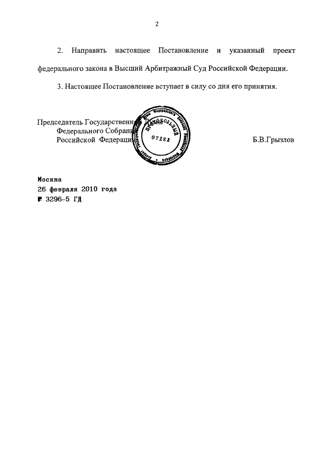 ПОСТАНОВЛЕНИЕ ГД ФС РФ от 26.02.2010 N 3296-5 ГД