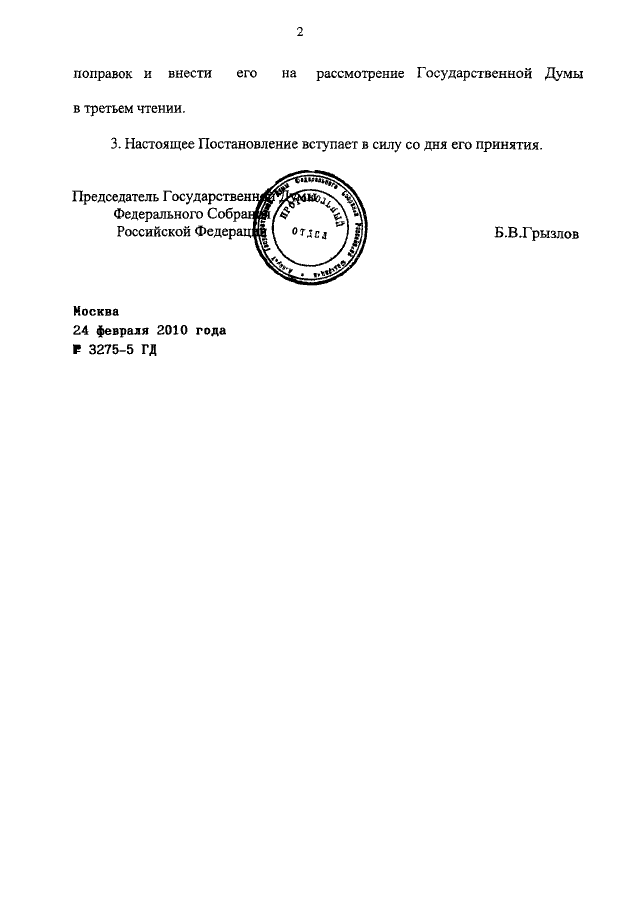 ПОСТАНОВЛЕНИЕ ГД ФС РФ от 24.02.2010 N 3275-5 ГД