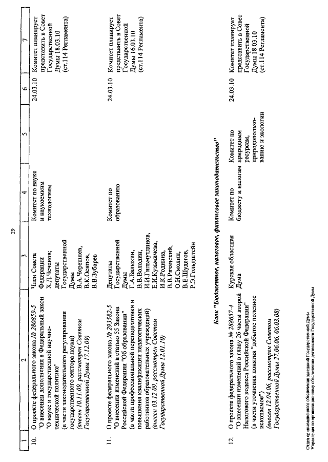 "О КАЛЕНДАРЕ РАССМОТРЕНИЯ ВОПРОСОВ ГОСУДАРСТВЕННОЙ ДУМОЙ С 10 ПО 26 МАРТА 2010 ГОДА"