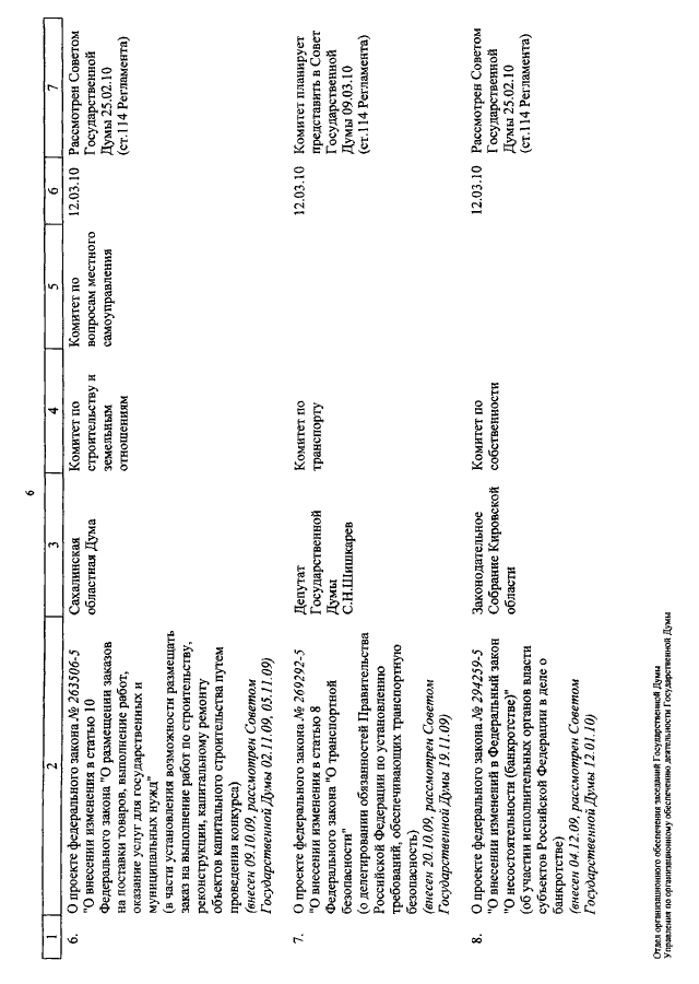 "О КАЛЕНДАРЕ РАССМОТРЕНИЯ ВОПРОСОВ ГОСУДАРСТВЕННОЙ ДУМОЙ С 10 ПО 26 МАРТА 2010 ГОДА"