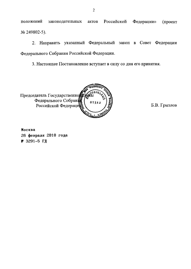 ПОСТАНОВЛЕНИЕ ГД ФС РФ от 26.02.2010 N 3291-5 ГД