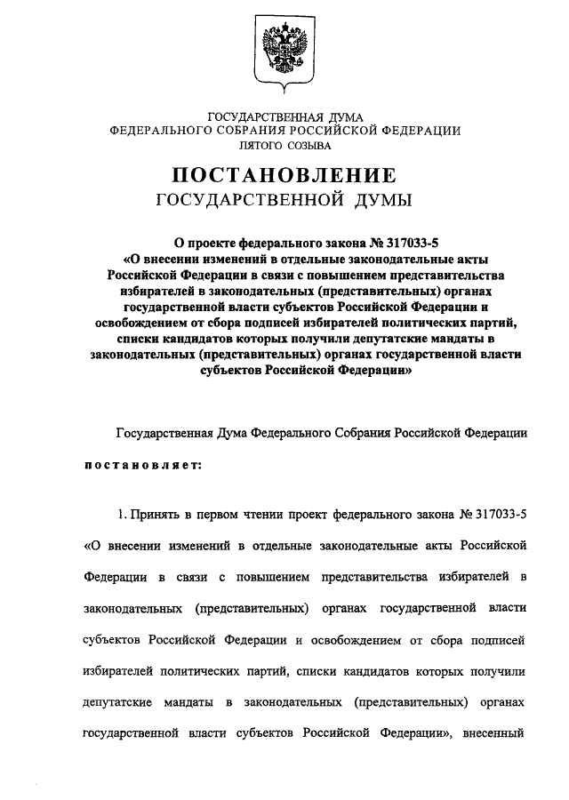 "О ПРОЕКТЕ ФЕДЕРАЛЬНОГО ЗАКОНА N 317033-5 "О ВНЕСЕНИИ ИЗМЕНЕНИЙ В