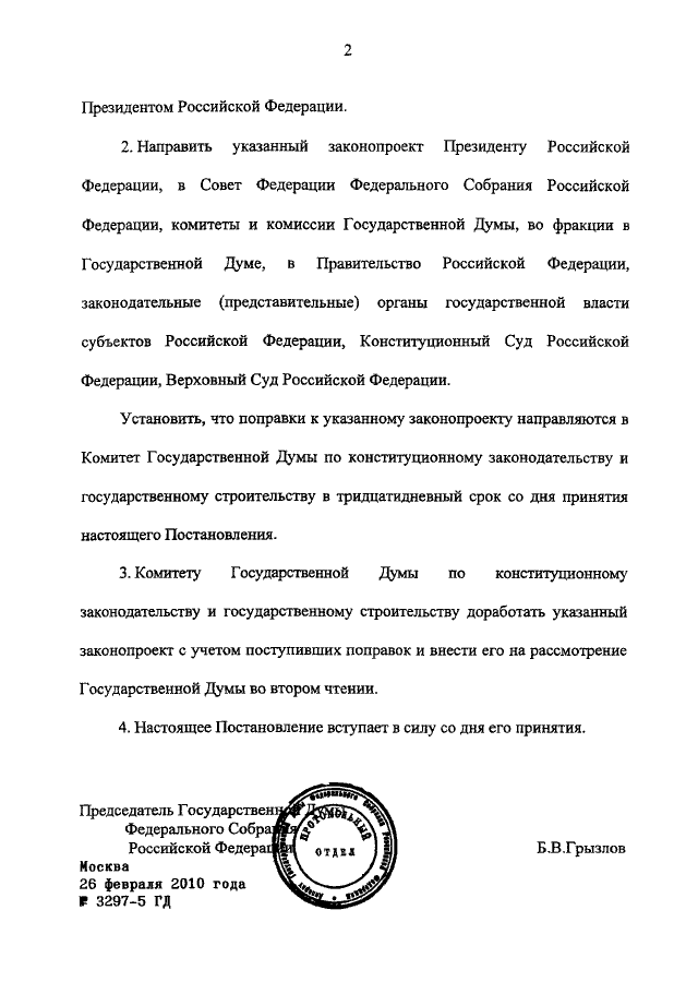 ПОСТАНОВЛЕНИЕ ГД ФС РФ от 26.02.2010 N 3297-5 ГД