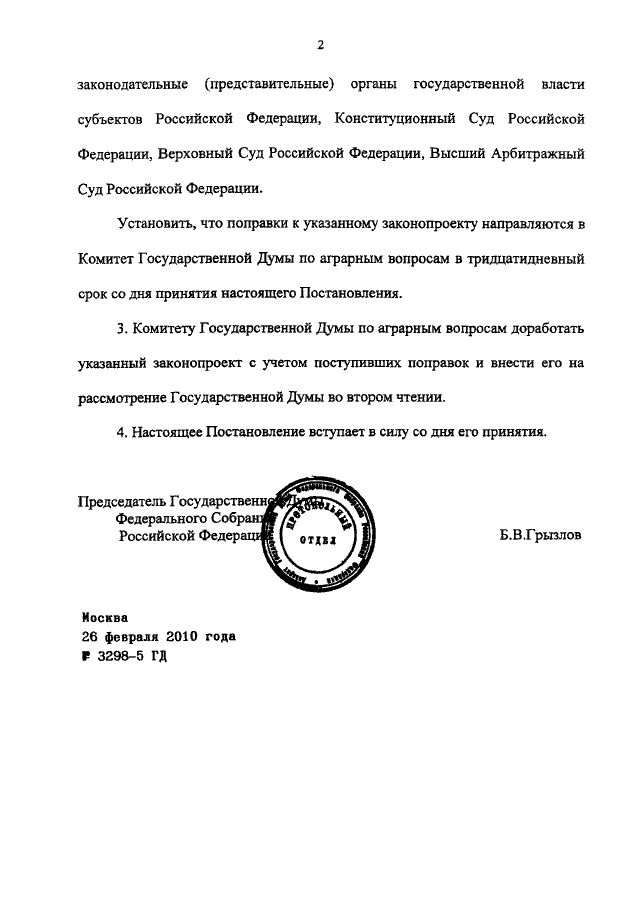 ПОСТАНОВЛЕНИЕ ГД ФС РФ от 26.02.2010 N 3298-5 ГД
