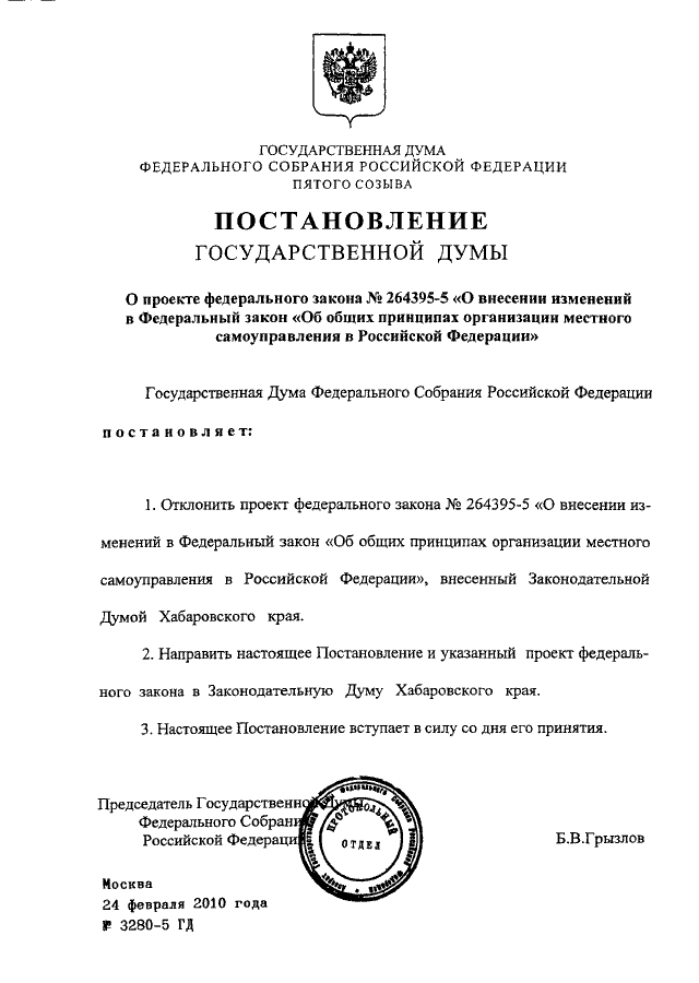 ПОСТАНОВЛЕНИЕ ГД ФС РФ от 24.02.2010 N 3280-5 ГД