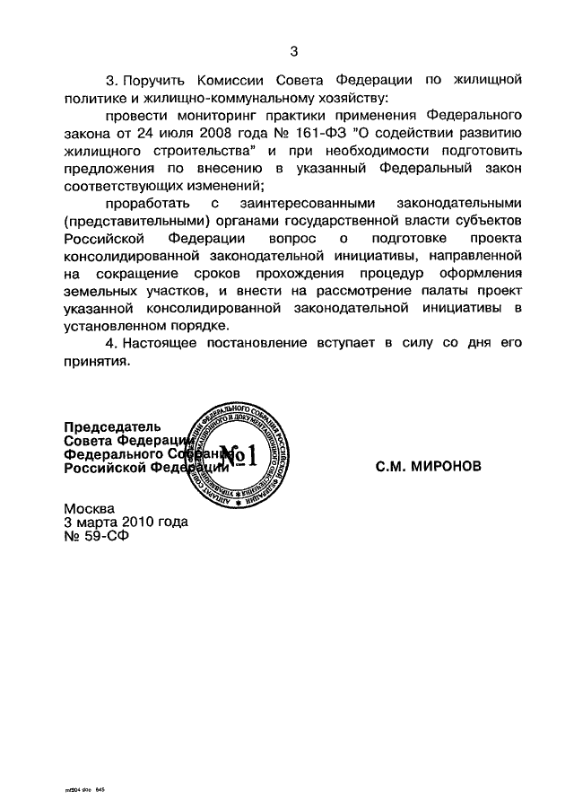 ПОСТАНОВЛЕНИЕ СФ ФС РФ от 03.03.2010 N 59-СФ