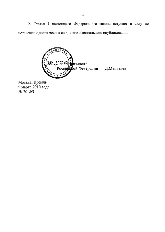 ФЕДЕРАЛЬНЫЙ ЗАКОН от 09.03.2010 N 20-ФЗ