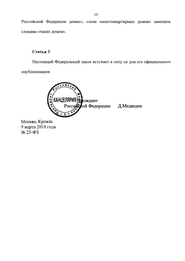 ФЕДЕРАЛЬНЫЙ ЗАКОН от 09.03.2010 N 25-ФЗ