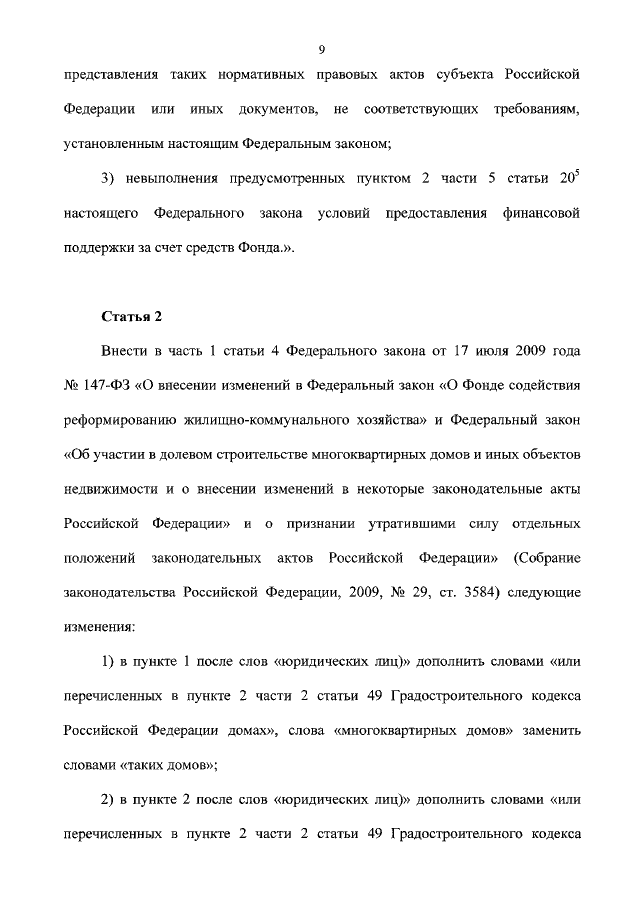 "О ВНЕСЕНИИ ИЗМЕНЕНИЙ В ФЕДЕРАЛЬНЫЙ ЗАКОН "О ФОНДЕ СОДЕЙСТВИЯ РЕФОРМИРОВАНИЮ ЖИЛИЩНО - КОММУНАЛЬНОГО ХОЗЯЙСТВА" И СТАТЬЮ 4 ФЕДЕРАЛЬНОГО ЗАКОНА "О ВНЕСЕНИИ ИЗМЕНЕНИЙ В ФЕДЕРАЛЬНЫЙ ЗАКОН "О ФОНДЕ СОДЕЙСТВИЯ РЕФОРМИРОВАНИЮ ЖИЛИЩНО - КОММУНАЛЬНОГО ХОЗЯЙСТВА" И ФЕДЕРАЛЬНЫЙ ЗАКОН "ОБ УЧАСТИИ В ДОЛЕВОМ СТРОИТЕЛЬСТВЕ МНОГОКВАРТИРНЫХ ДОМОВ И ИНЫХ ОБЪЕКТОВ НЕДВИЖИМОСТИ И О ВНЕСЕНИИ ИЗМЕНЕНИЙ В НЕКОТОРЫЕ ЗАКОНОДАТЕЛЬНЫЕ АКТЫ РОССИЙСКОЙ ФЕДЕРАЦИИ" И О ПРИЗНАНИИ УТРАТИВШИМИ СИЛУ ОТДЕЛЬНЫХ ПОЛОЖЕНИЙ ЗАКОНОДАТЕЛЬНЫХ АКТОВ РОССИЙСКОЙ ФЕДЕРАЦИИ"
