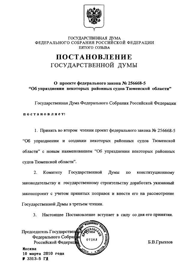 ПОСТАНОВЛЕНИЕ ГД ФС РФ от 10.03.2010 N 3313-5 ГД