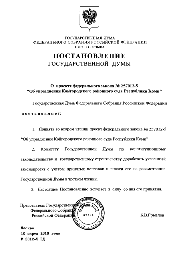 ПОСТАНОВЛЕНИЕ ГД ФС РФ от 10.03.2010 N 3312-5 ГД