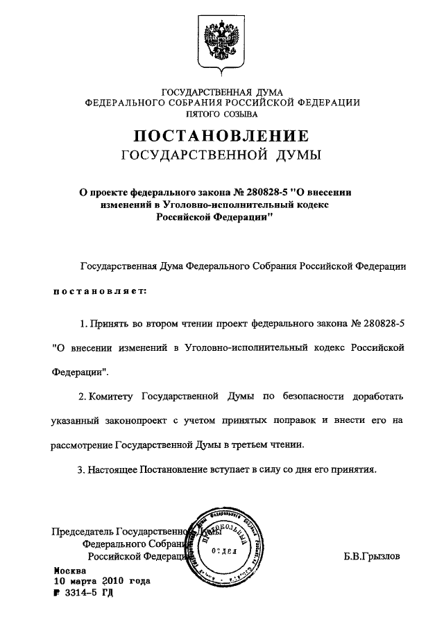 ПОСТАНОВЛЕНИЕ ГД ФС РФ от 10.03.2010 N 3314-5 ГД