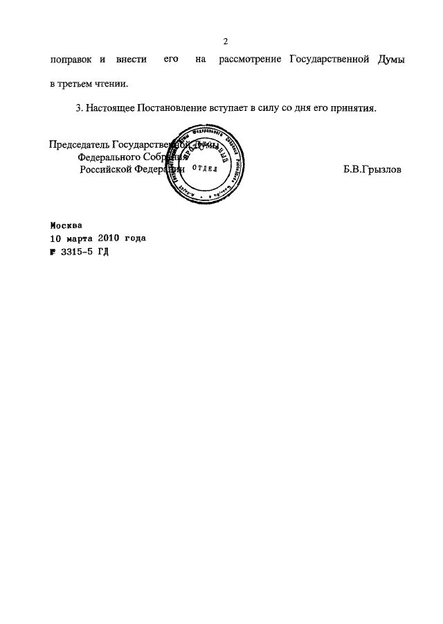 ПОСТАНОВЛЕНИЕ ГД ФС РФ от 10.03.2010 N 3315-5 ГД