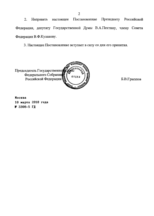 ПОСТАНОВЛЕНИЕ ГД ФС РФ от 10.03.2010 N 3308-5 ГД